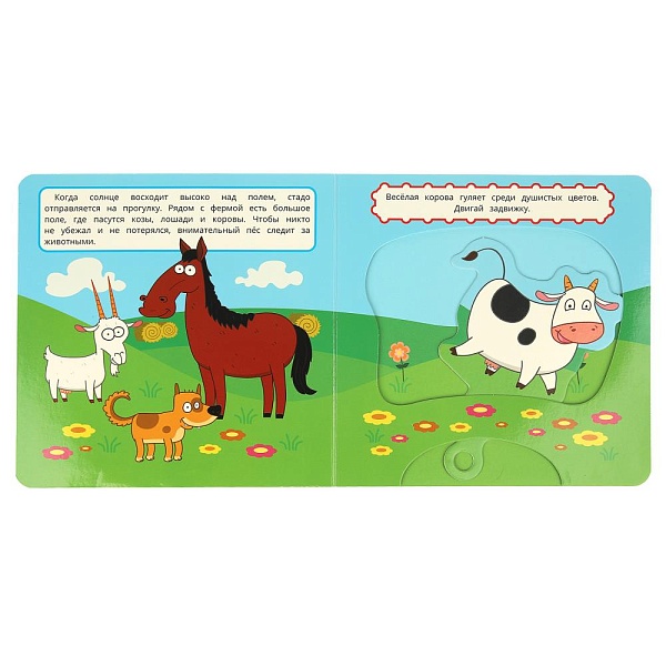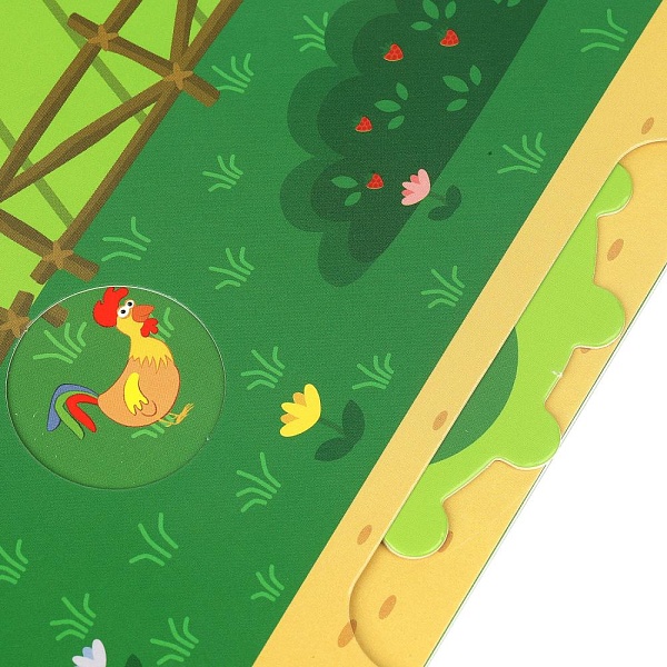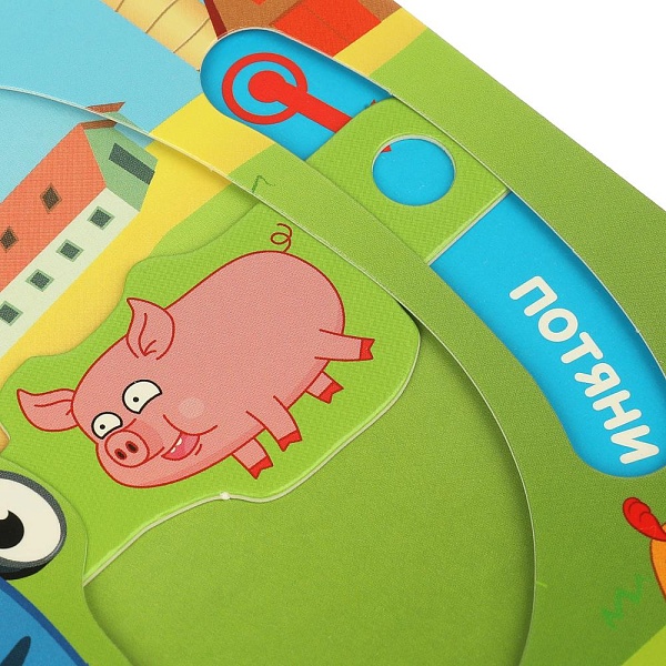 Малыш с удовольствием будет листать яркие странички и знакомиться с забавными обитателями фермы, на каждом развороте его также будут ждать занимательные задания. Ребёнку будет интересно выполнит все задания, ответы на которые можно узнать, если потянуть секретную задвижку. Благодаря компактному размеру книгу удобно брать с собой на прогулку или в дорогу.