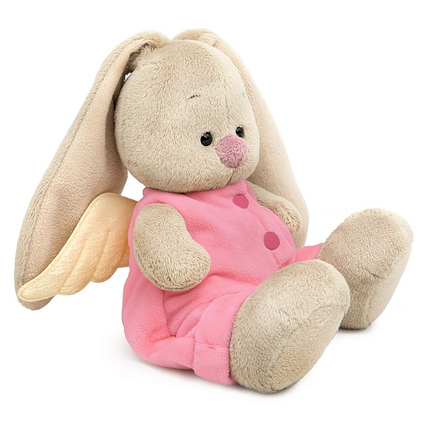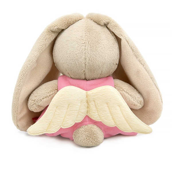 Малышка Зайка Ми в образе милого Ангелочка. На Зайке нежно-розовый комбинезон с крылышками из короткого меха сливочно-молочного оттенка. Комбинезон сшит из софта и застегивается на матовые кнопки.